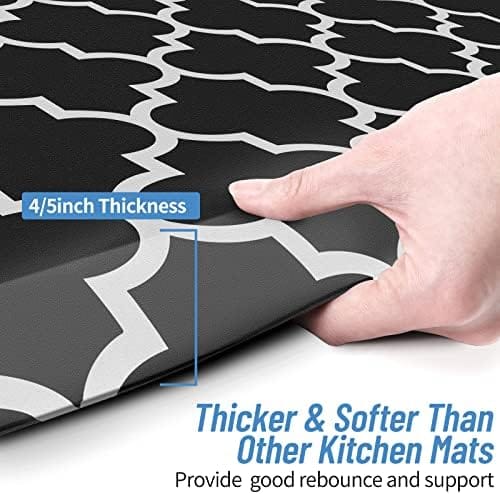 4/5 Inch Thick Kitchen Rugs, Kitchen Mat, Anti Fatigue Floor Mat, Waterproof Mats & Rugs, Heavy Duty PVC Ergonomic Comfort Standing Foam for Kitchen, Home, Office, Sink, Garage (24″ x 17.3″, Black)