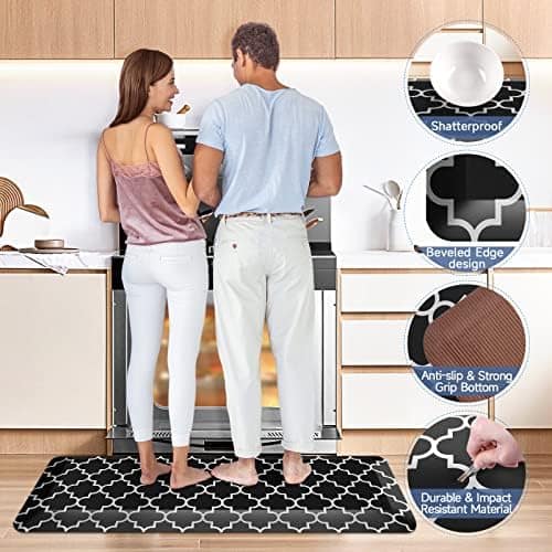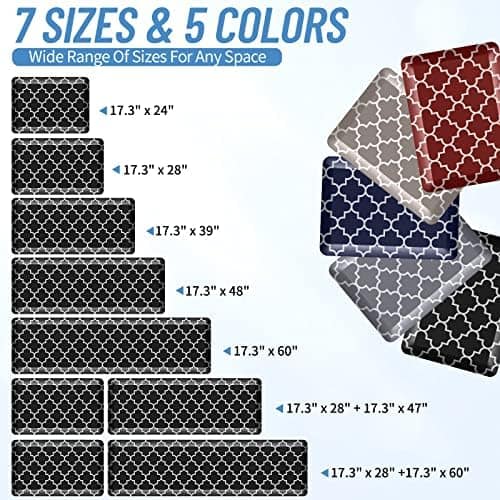 • Anti-Slip & Water Resistant: Top of the anti-fatigue mats are designed with four-leaf clover pattern while the bottom is made of non-slip material. Memory foam kitchen mats can be used on a variety of surfaces (tile, wood, ceramic, marble, etc.). [WARNING!!] Area under the mat should be clean, flat, and dry before placing the kitchen mats on the floor. Water or dust under mat may cause slippage.