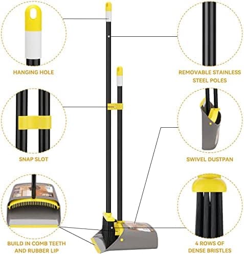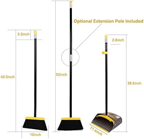 • Broom and Dustpan sweep set has a full-size broom and large dustpan, perfect for any sweeping task, and then the broom retracts with a quick twist to easily sweep dirt piles into the dustpan.