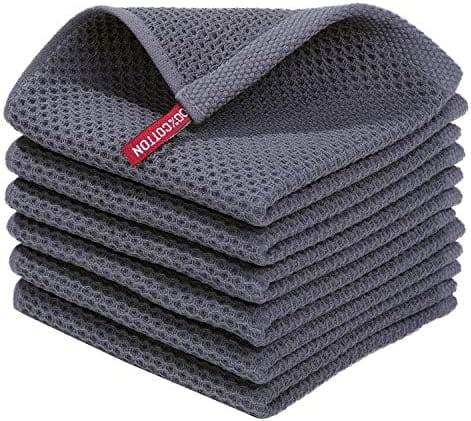 Home Home & Kitchen 100% Cotton Waffle Weave Kitchen Dish Cloths, Ultra Soft Absorbent Quick Drying Dish Towels, 12×12 Inches, 6-Pack, Dark Grey