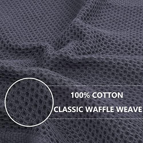 100% Cotton Waffle Weave Kitchen Dish Cloths, Ultra Soft Absorbent Quick Drying Dish Towels, 12×12 Inches, 6-Pack, Dark Grey
