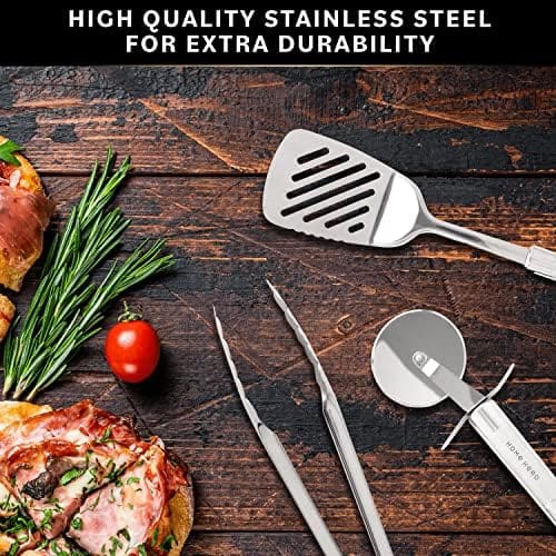 • Unlike many other utensil sets that are flimsy, melt, or break after a few uses, our 54-piece premium kitchen utensils are crafted with high-quality stainless steel & silicone & are designed to last, so you won’t have to replace your kitchen spatula or ladle in 5 months like with another cheaper kitchenware set.