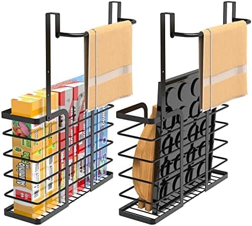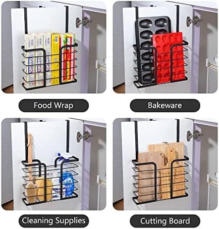 Be the first to review “2 Pack Cabinet Door Organizer, Kitchen Cutting Board Holder with Towel Bar, Over Cabinet Door Storage for Foil, Plastic Wrap, Baking Sheet, Black” Cancel reply