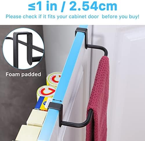 Home Home & Kitchen 2 Pack Cabinet Door Organizer, Kitchen Cutting Board Holder with Towel Bar, Over Cabinet Door Storage for Foil, Plastic Wrap, Baking Sheet, Black