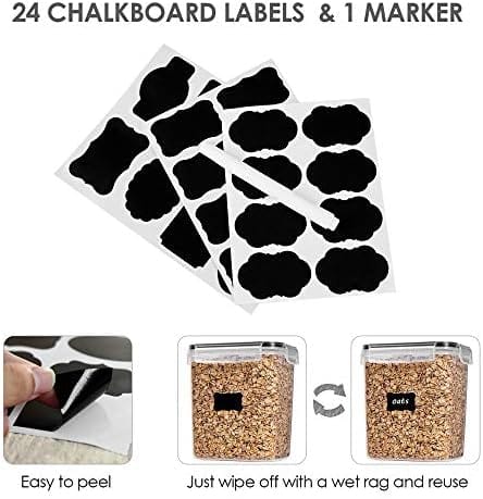 - 24 Reusable Labels —-Except 15pcs dry food storage containers, you will also receive 24pcs labels. They are reusable, you can switch contents whenever you need. Just wipe clean with a damp cloth to change what you have written, Peel and Re-stick.