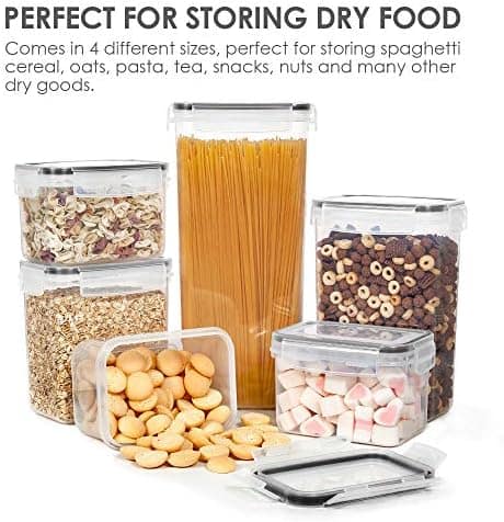 - Airtight Containers Keep Food Fresh—-The side-locking lids with silicone gasket make these storage containers airtight, and the top flips open easily. Airtight storage system will always keep your food dry and fresh. All have the same lids make it easy to wash dry and reuse with ease.