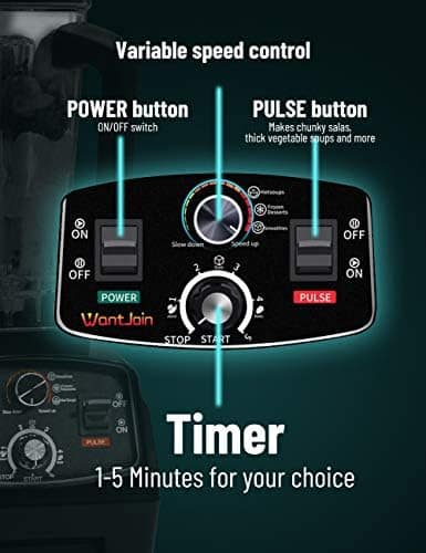 • Professional home and commercial Countertop Blender -adopt Max 1800W power (3 peak horsepower and hardened stainless-steel blade, up to 30,000 RPM and makes crushing ice faster and blend ingredients smoother than other blenders.